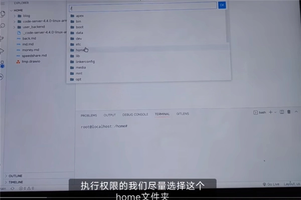 2、然后選擇home文件夾;