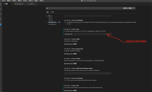打開(kāi)設(shè)置頁(yè)面,搜索Live Server,找到Liver Server -->host,進(jìn)入設(shè)置;