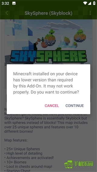 5、在此界面點擊CONTINUE,點擊完成導入了,隨后會自動跳轉至我的世界游戲,玩家就可以上線暢玩啦!