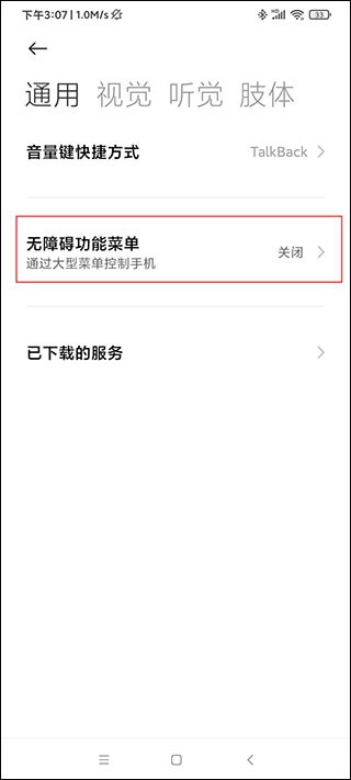 2、點(diǎn)擊“輔助功能權(quán)限”后,找到“無(wú)障礙功能菜單”,是默認(rèn)關(guān)閉的,需要開(kāi)啟。