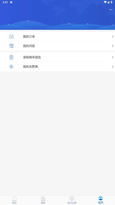 5、最后在“我的”版塊里,能夠查詢我的訂單、我的問答、錄取概率報(bào)告、我的志愿表等內(nèi)容。