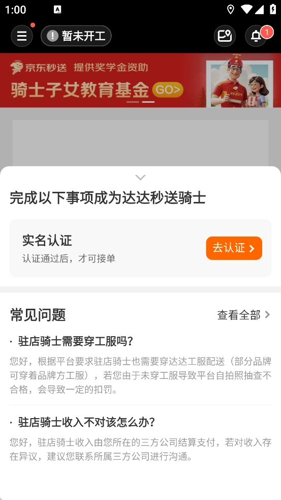 2.按要求完成認(rèn)證后即可注冊(cè)京東外賣(mài)兼職成為騎手