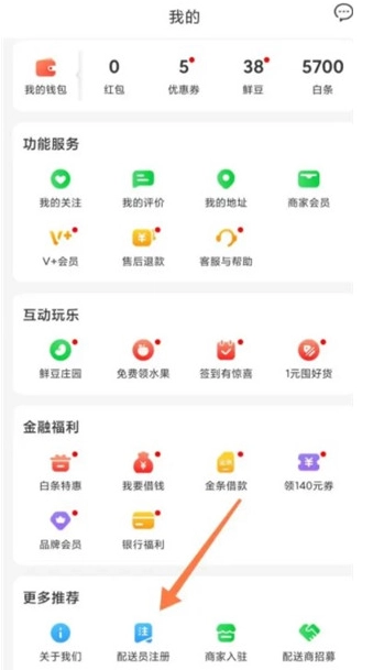 前往京東中,在我的頁(yè)面中點(diǎn)擊【配送員注冊(cè)】;