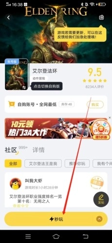 2、在游戲的頁(yè)面中,點(diǎn)擊下方的“秒玩”;