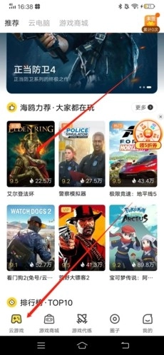 進(jìn)入后,先點(diǎn)擊左下角的“云游戲”選項(xiàng),接著選擇你想玩的游戲并點(diǎn)擊即可。