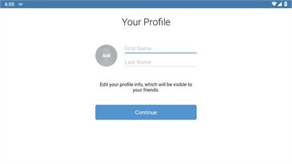 5、請?zhí)顚懩愕男彰?,還能選擇添加個人頭像。這一步驟屬于可選操作,不過完成它不僅能幫助朋友更快識別出你,也能讓你的Zangi賬戶更有個性。