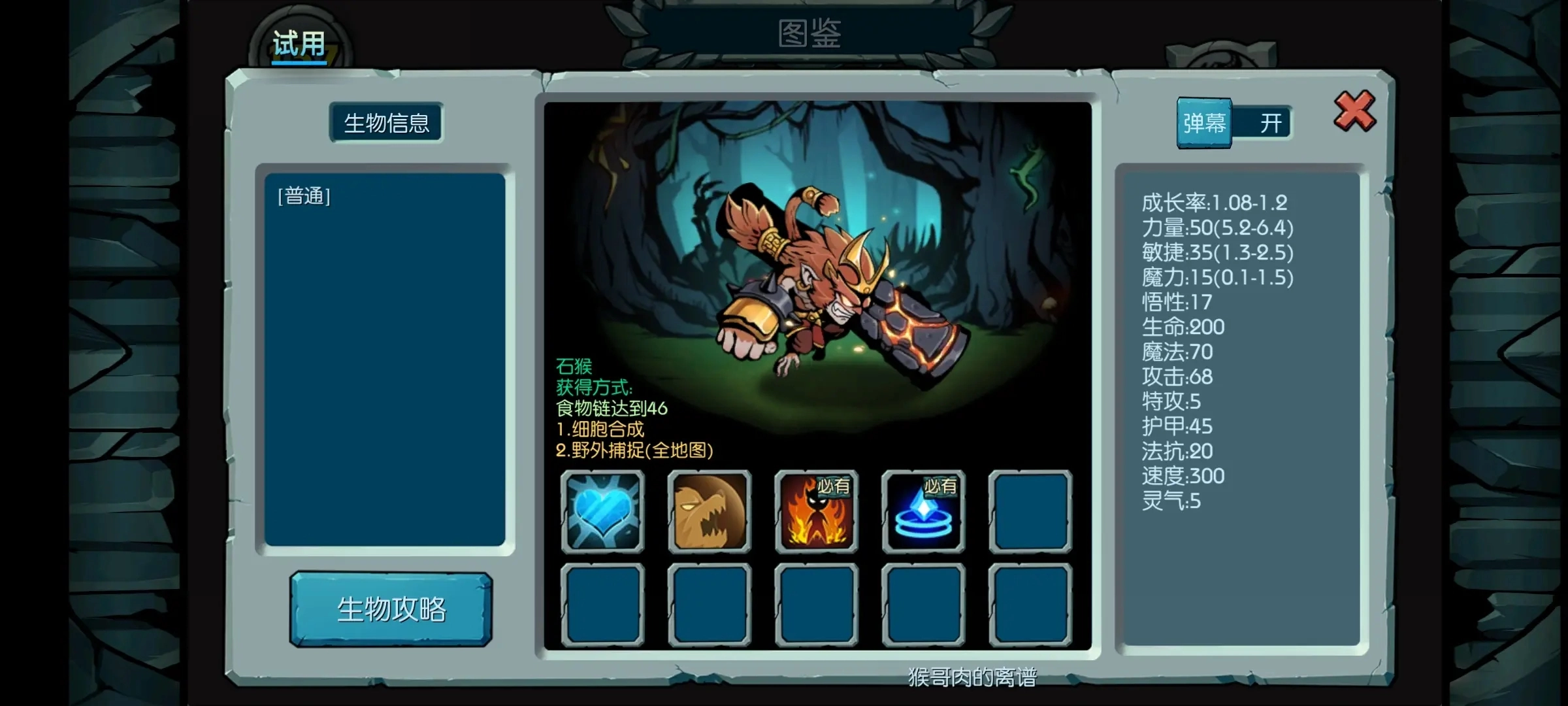前期猴子可帶自然之力、龍氣、光合作用等回復(fù)技能。