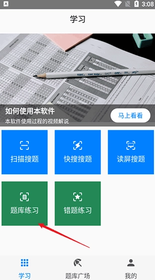 3、然后回到"學習"板塊,點擊題庫練習進入。