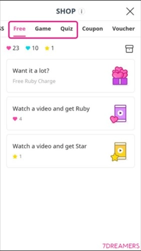 登錄應用程序后,你能夠收集chamsims(心形)與星星。