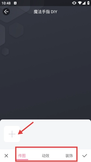 3、進(jìn)入魔法手指DIY,切換到【傳圖】欄,點(diǎn)擊【+】傳圖進(jìn)行編輯。