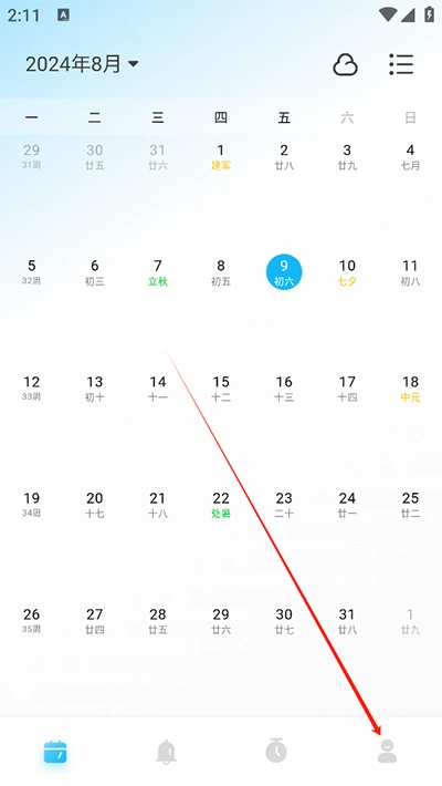 1、日歷清單打開登錄軟件,點擊我的;