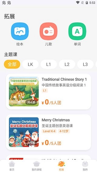 6、點擊拓展,這里有一些課外活動,如繪本、等