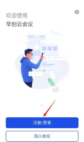 1.并打開華創(chuàng)云會議應(yīng)用。在登錄界面點擊“注冊/登錄”