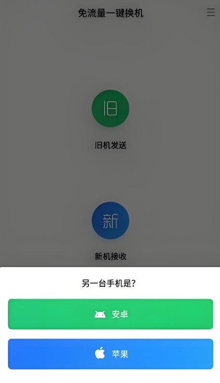 1、在本站并安裝閃電換機,點擊舊機發(fā)送或新機接受,選擇另一臺手機的系統(tǒng)