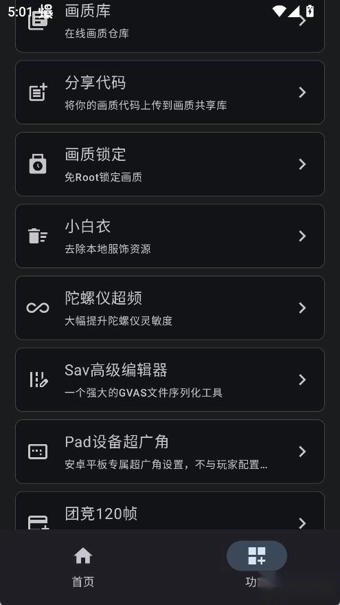 1、優(yōu)畫工具箱支持一鍵優(yōu)化、六檔畫質(zhì)預(yù)設(shè)、云端同步以及防畫質(zhì)重置等核心功能,全部可在無Root狀態(tài)下使用。