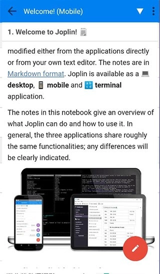 記筆記時支持使用 Markdown 格式(兼容數(shù)學(xué)符號與復(fù)選框功能),還能在筆記里添加附件(包含圖像預(yù)覽功能);也可以通過外部 Markdown 編輯器編輯筆記,每次保存文件后,內(nèi)容會自動同步更新到 Joplin 中。