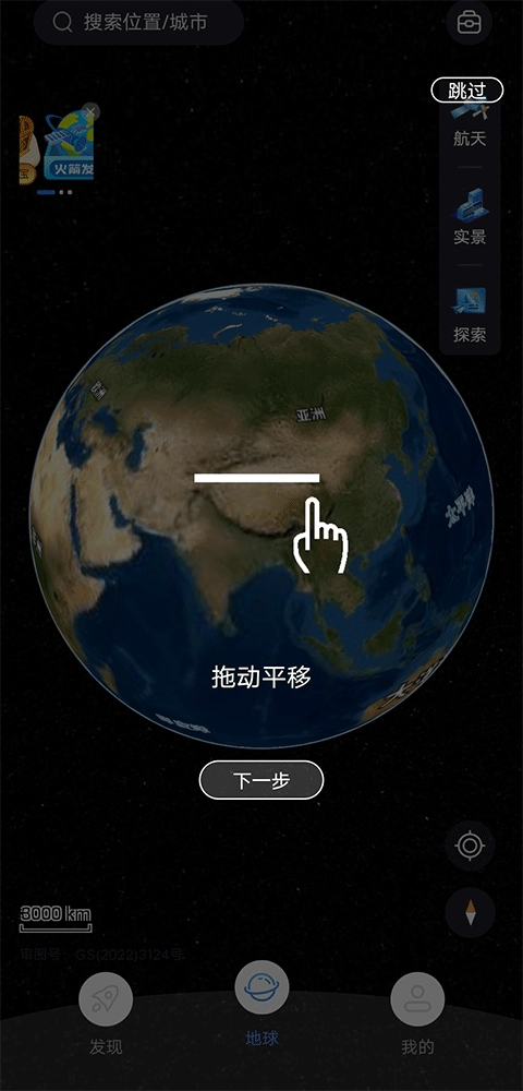 1、單指上下左右拖動,地球也將隨手指的方向進行轉動。