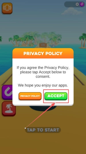 1、閱讀政策:在PRIVACYPOLICY界面點(diǎn)擊ACCEPT,隨后點(diǎn)擊TAP TO START。