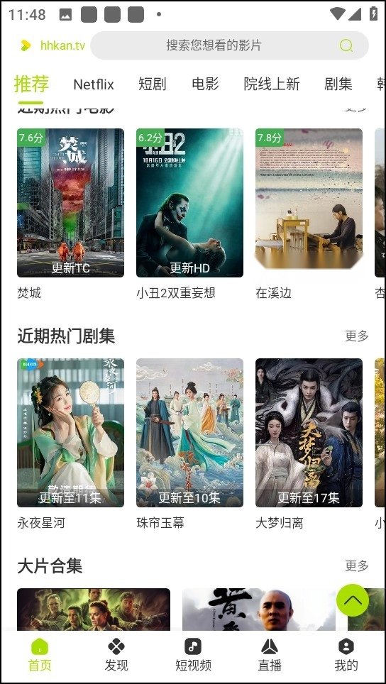 打開軟件后,映入眼簾的是十分簡潔清爽的界面,上面匯集了一系列熱門影視作品,我們可以隨意點擊其中一部。