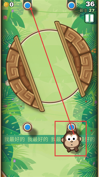 2、彈射時讓【猴子】掛在藍色節(jié)點上,借助場景中的機關(guān)結(jié)構(gòu)調(diào)整彈射方向,可提升彈射的連貫性。