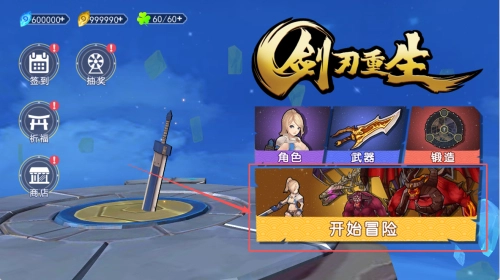 1、進入主界面:啟動游戲后,會進入主界面,此時選擇“開始冒險”按鈕即可進入游戲。