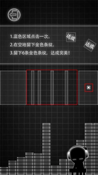1、藍(lán)色區(qū)域點擊一次,2.在空地留下金色條紋。3.留下6條金色條紋,達(dá)成完美!
