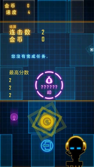 游戲結(jié)束后,你能看到自己的最高連擊數(shù);要是沒完成任務(wù),就無法獲得金幣。