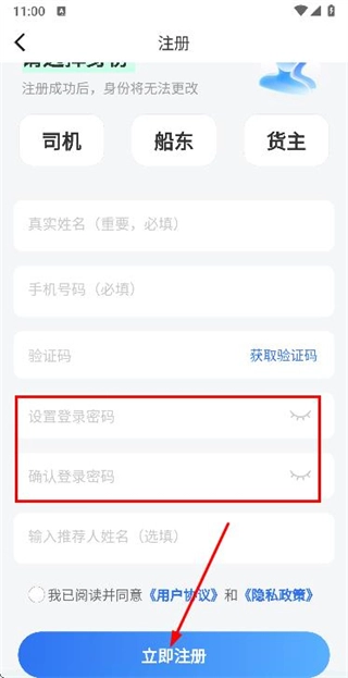 3、在注冊(cè)賬號(hào)頁(yè)面填寫(xiě)驗(yàn)證碼和密碼,勾選協(xié)議后點(diǎn)擊立即注冊(cè)完成賬號(hào)注冊(cè)操作。