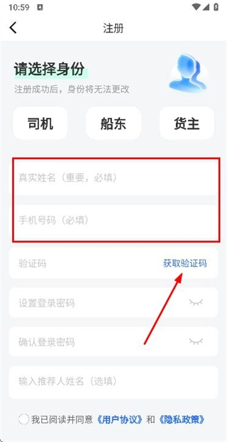 2、在注冊(cè)賬號(hào)頁(yè)面填寫(xiě)姓名、手機(jī)號(hào)碼后,點(diǎn)擊獲取驗(yàn)證碼。