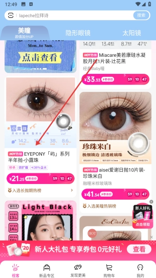 2、選美瞳分類,瀏覽商品看參數(shù)。