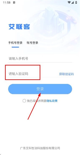 3、在驗(yàn)證碼輸入框中填寫收到的驗(yàn)證碼,點(diǎn)擊登錄完成賬號的登錄操作。