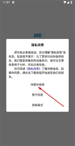 1、在使用協(xié)議與隱私政策彈窗里點(diǎn)擊“同意并接受”按鈕,即可進(jìn)入登錄頁面。