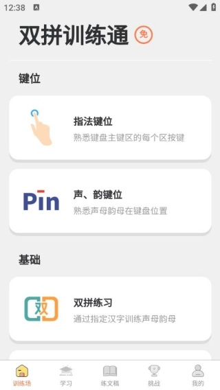 雙拼訓(xùn)練通是一款專注于高效系統(tǒng)雙拼打字訓(xùn)練的手機(jī)應(yīng)用,構(gòu)建了從拼音基礎(chǔ)認(rèn)知到高階文稿實(shí)操的完整學(xué)習(xí)路徑,兼容搜狗雙拼、小鶴雙拼等主流雙拼方案。無論您是剛接觸雙拼的零基礎(chǔ)用戶,還是希望突破打字速度瓶頸的進(jìn)階者,都能借助其科學(xué)設(shè)計(jì)的訓(xùn)練模塊快速掌握雙拼核心技巧,助力您告別傳統(tǒng)全拼輸入的冗余步驟,逐步達(dá)成打字速度媲美五筆的目標(biāo)。
