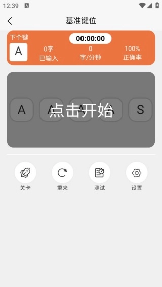 2、在基準(zhǔn)鍵位界面,直接點(diǎn)擊開始,會進(jìn)行計(jì)時(shí)輸入,提升輸入的效率。