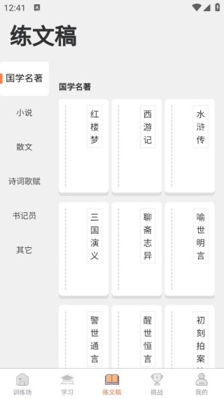 4、練文稿提供豐富多樣的文字內(nèi)容,您只需點(diǎn)擊自己感興趣的內(nèi)容,直接進(jìn)行輸入操作即可。