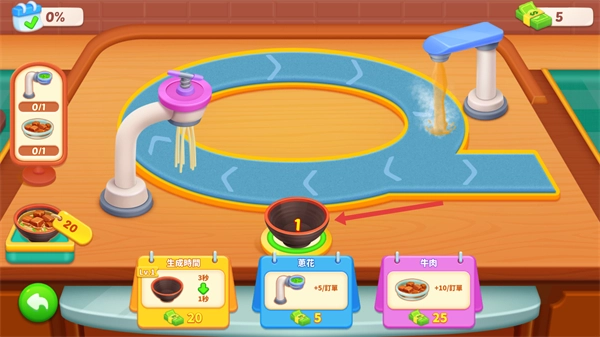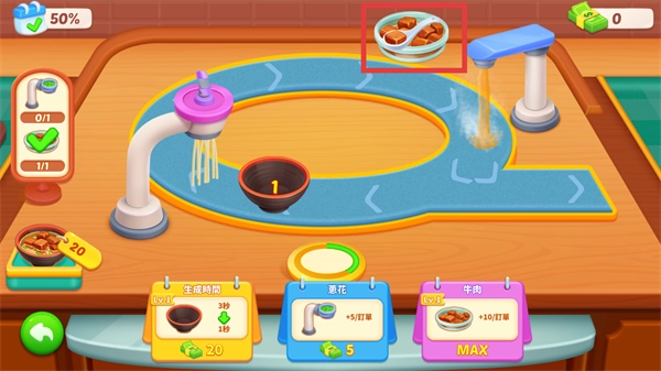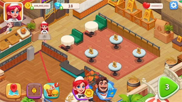 1、在餐廳主界面,點(diǎn)擊【餐食圖標(biāo)】進(jìn)入烹飪關(guān)卡,準(zhǔn)備制作對(duì)應(yīng)餐品。
