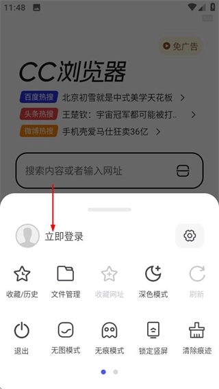 CC瀏覽器作為聚焦極速便捷瀏覽體驗(yàn)的移動(dòng)平臺(tái),依托極簡(jiǎn)界面讓各項(xiàng)功能一觸即達(dá);它整合了全網(wǎng)熱搜資源,能夠?qū)崟r(shí)捕捉熱點(diǎn)信息,還支持常用功能自定義菜單設(shè)置與精準(zhǔn)網(wǎng)址添加;同時(shí)配備廣告攔截、隱私保護(hù)等實(shí)用功能,采用強(qiáng)勁內(nèi)核優(yōu)化加載速度,在省流與安全方面做到兼顧,可適配日常瀏覽、資訊獲取、高效辦公等多種場(chǎng)景。