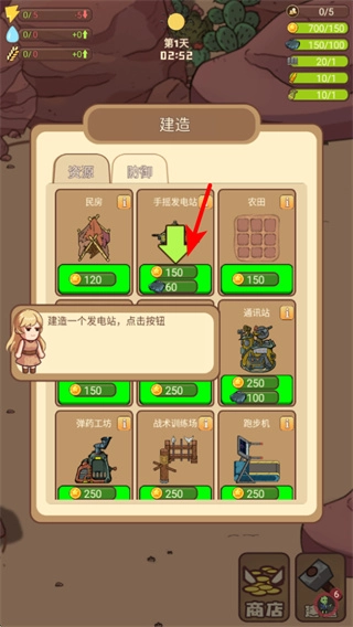 3、建造發(fā)電站時(shí),在建造菜單里選擇手提發(fā)電機(jī)選項(xiàng),消耗相應(yīng)資源就能完成建造,為后續(xù)基地的電力供應(yīng)提供支持。