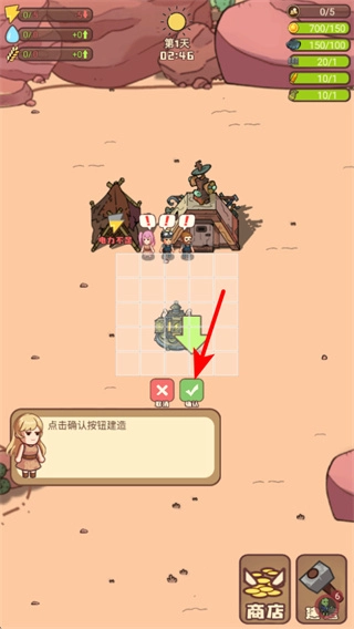 4、確認(rèn)建筑擺放位置后,點(diǎn)擊綠色對勾按鈕完成操作,這是固定建筑的關(guān)鍵步驟,點(diǎn)擊后建筑將安置在當(dāng)前區(qū)域。