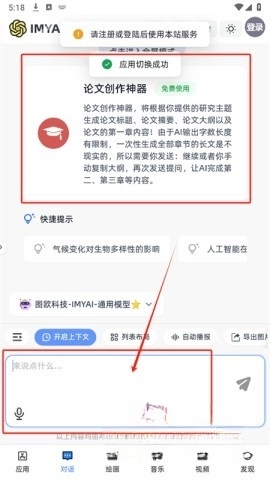 2、應(yīng)用借助先進(jìn)的人機(jī)交互技術(shù),搭配豐富的對話詞庫與繪畫靈感,為各類用戶帶來優(yōu)質(zhì)的服務(wù)體驗(yàn)。不管您是需要文案創(chuàng)作或是編程輔助,IMYAI都具備適配您的工具。