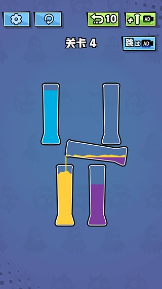 1、玩家需要把同一個(gè)顏色的液體倒入同一個(gè)玻璃杯中,