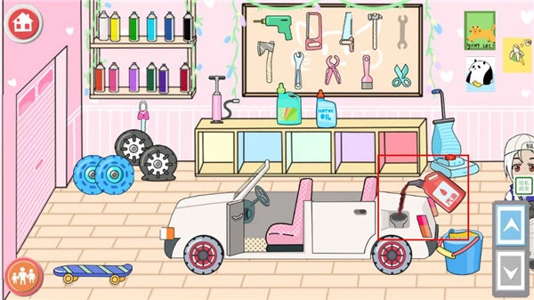 1、點(diǎn)擊架子上的顏料瓶,可以噴出霧體改變車(chē)體顏色。