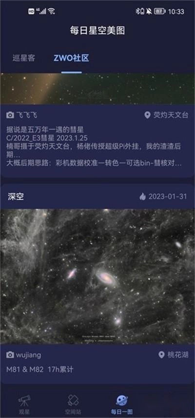 4、"每日一圈"匯聚全球天文愛好者實拍的星空大片,既可欣賞壯麗星空,也能獲取各地實時的觀星條件參考。