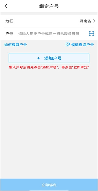 選擇您所在的省市地區(qū),準(zhǔn)確輸入用電戶號(hào)完成綁定