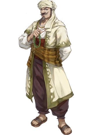 來(lái)自北非沿岸阿爾塔戈的貿(mào)易商人。八年前漂流到這里后,他憑借強(qiáng)硬的作風(fēng)與充沛的精力帶領(lǐng)眾人,讓利摩日的街景煥然一新,呈現(xiàn)出歐羅巴風(fēng)格的樣貌。盡管他因推動(dòng)森林采伐、破壞遺跡,成為亞人與歐洲人關(guān)系緊張的導(dǎo)火索,但他并非本性邪惡之輩。