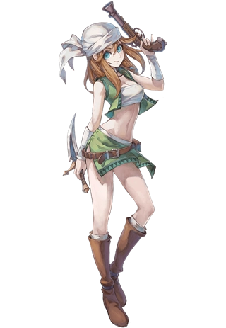 三年前,阿多爾在桑多利亞認(rèn)識(shí)了一位密賊少女。她曾說(shuō)過(guò)“等我變成好女人!”,如今雖已長(zhǎng)成亭亭玉立的大姑娘,性格卻幾乎沒(méi)什么變化。現(xiàn)在她待在父親“海賊拉多克”身邊,作為海盜船“Ires-Maris”的成員活躍著。