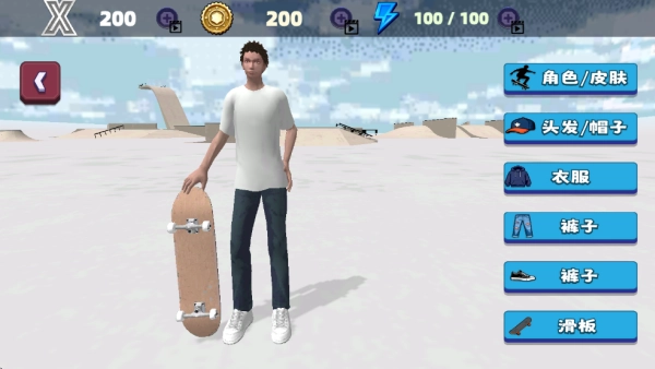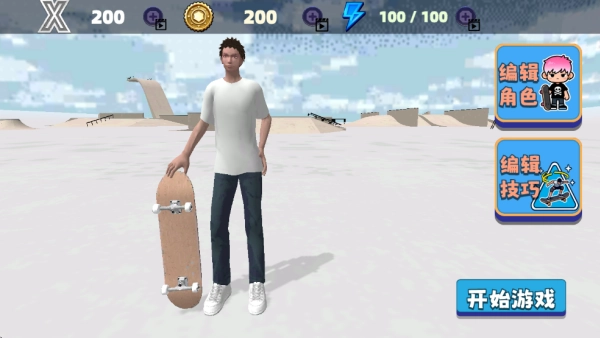 在游戲主界面,玩家能夠?qū)巧煨瓦M(jìn)行編輯,還可以挑選不同的滑板技巧。