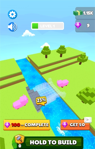 最后挖掘出的資源不只能用來獲取金幣,還可以用石頭搭建小橋,助力豬豬們重逢。