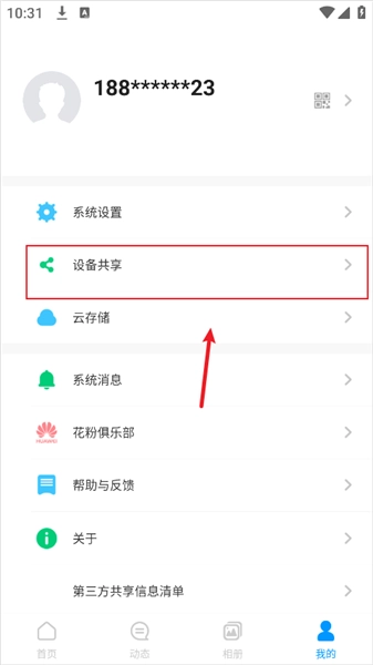 打開(kāi)華為智能攝像機(jī),點(diǎn)擊“我的”“設(shè)備共享”。