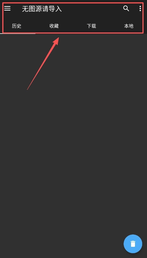 2、面對(duì)“無(wú)圖源請(qǐng)導(dǎo)入”的提示,你需要主動(dòng)添加資源,點(diǎn)擊app底部的“本地”標(biāo)簽,然后選擇導(dǎo)入存放在手機(jī)里的圖源文件。